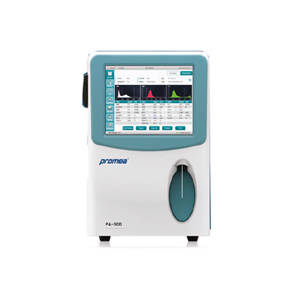 Whole blood 9 µl, pre-diluted 20 µl |WBC 100 µm, RBC/PLT 70 µm|60 samples per hour|500,000 sample results with histograms